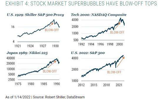 有业内人士指出:美国股市正处于过去100百年来的第四次“超级泡沫”中。这次泡沫会像1929年股灾、2000年互联网泡沫破灭和2008年金融危机时一样破裂,使大盘指数回到统计正态甚至可能进一步下跌。当悲观情绪回归市场时,我们面临的潜在财富缩水程度可能会是美国历史上最大的。